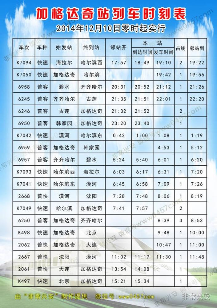 加格达奇列车时刻表