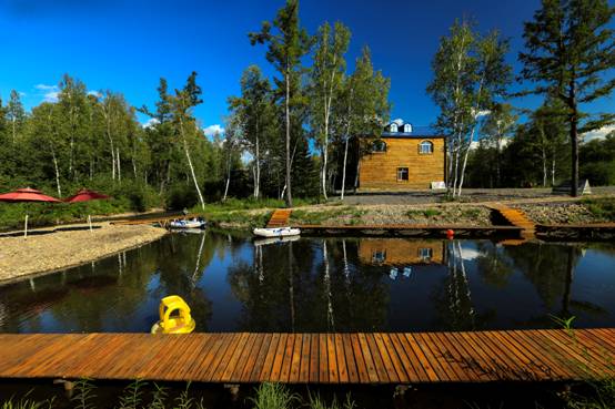 山庄占地面积40000平方米,水面面积21000平方米,共设住宿区、餐饮区、娱乐健身区、垂钓区、水上游乐区、写生区、采摘区、自助烧烤区、儿童水上乐园等。山庄内有木制别墅两栋,建筑面积1500余平方米,别墅内设会议室、套房、标间、餐厅、娱乐室等,服务设施齐全,可同时接待80余人会议、住宿、用餐,是生日Party、同学、家庭聚会和开展各类活动的好去处。