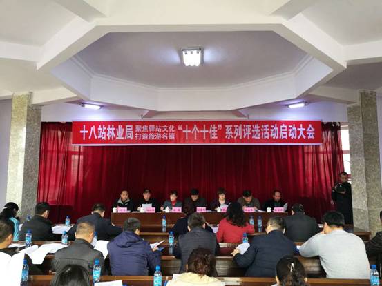 为进一步推动十八站林业局生态旅游文化产业快速发展,增强文明诚信服务意识,提升十八驿站旅游服务质量,建设秀美驿站。3月27日,十八站旅游局联合宣传部、局工会等五家单位召开以“聚焦驿站文化、打造旅游名镇”为主题的“十个十佳”系列评选活动的启动大会,24家单位负责人参加了会议。