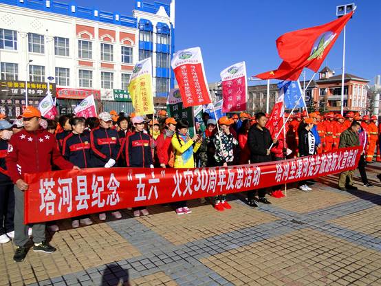 4月30日上午7:00,在塔河仁和广场举办“五·六火灾”30周年长途徒步反思、宣传活动启动仪式。塔河县委常委、宣传部部长陈秀霞,塔河林业局副局长刘健出席启动仪式。