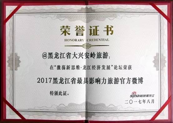 近日,2017黑龙江省最具影响力旅游官方微博评选活动中,365bet体育在线直播旅游官方微博“@黑龙江省365bet体育在线直播旅游”喜获第一名。
